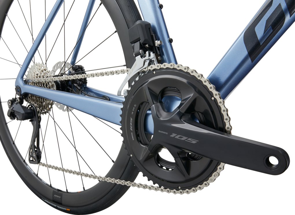 Giant Bikes ▶ Aerodynamic carbon road bike with fully integrated cable routing and electric Shimano 105 Di2 gears. ▶ Model: frost silver