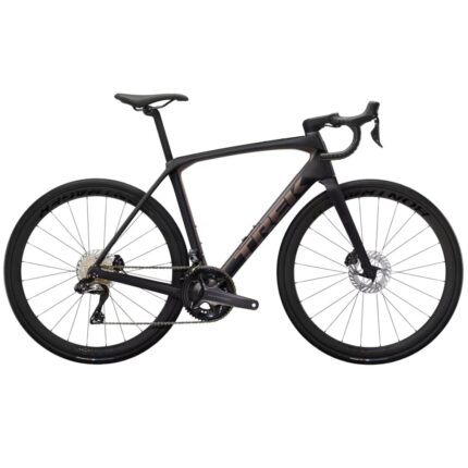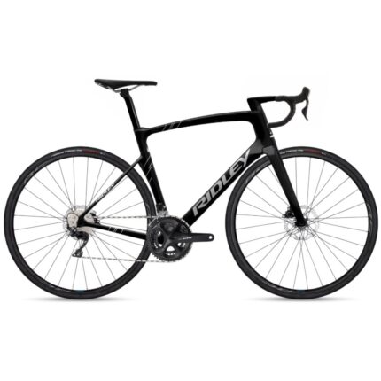 Aerodynamic carbon road bike with fully integrated cable routing and 2×12-speed Shimano 105 gears.
