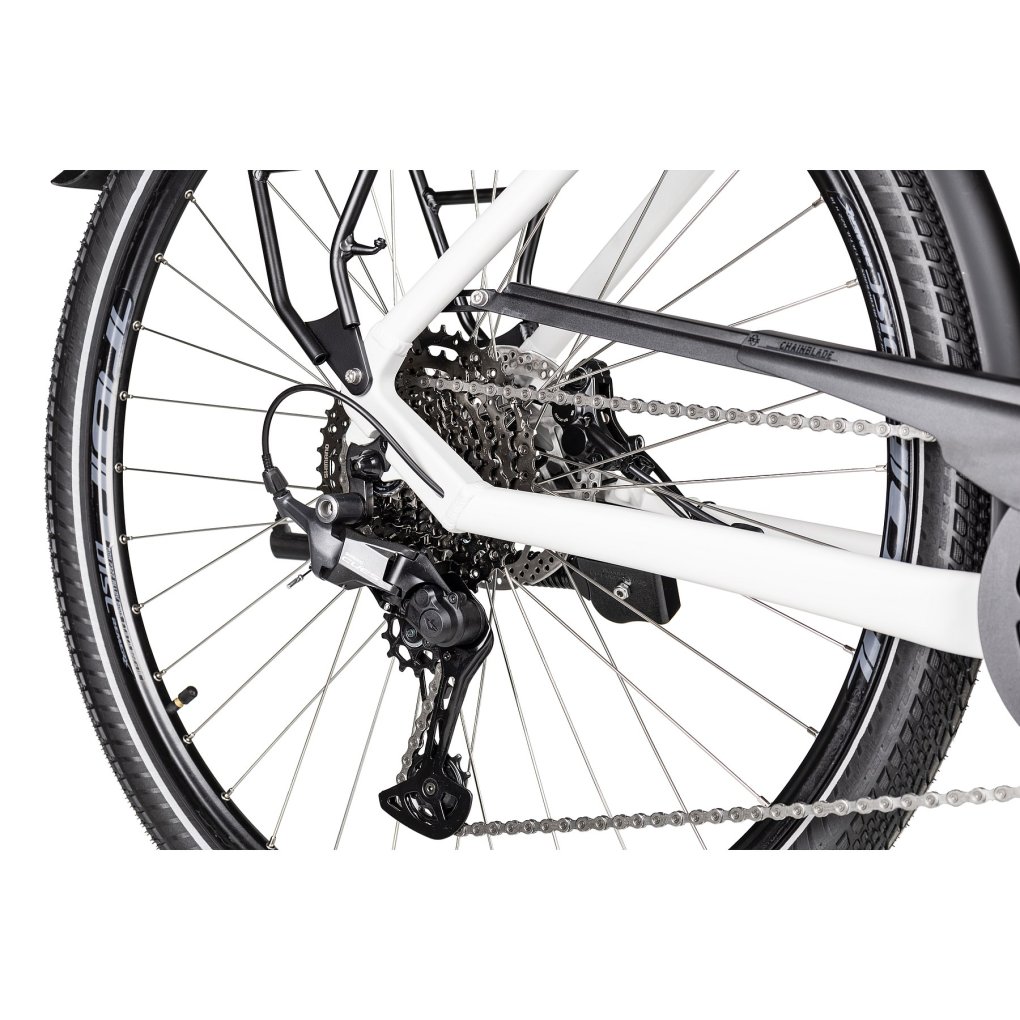 Fully equipped E-bike with Bosch CX drive/750Wh battery, Suntour fork & 1×10 Shimano Cues.