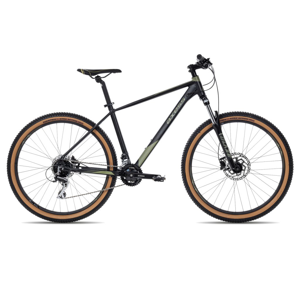 Axess Bikes ▶ Entry-level MTB with excellent price/performance ratio. Hydraulic disc brakes and 16 gears. ▶ Model: satinblack olive