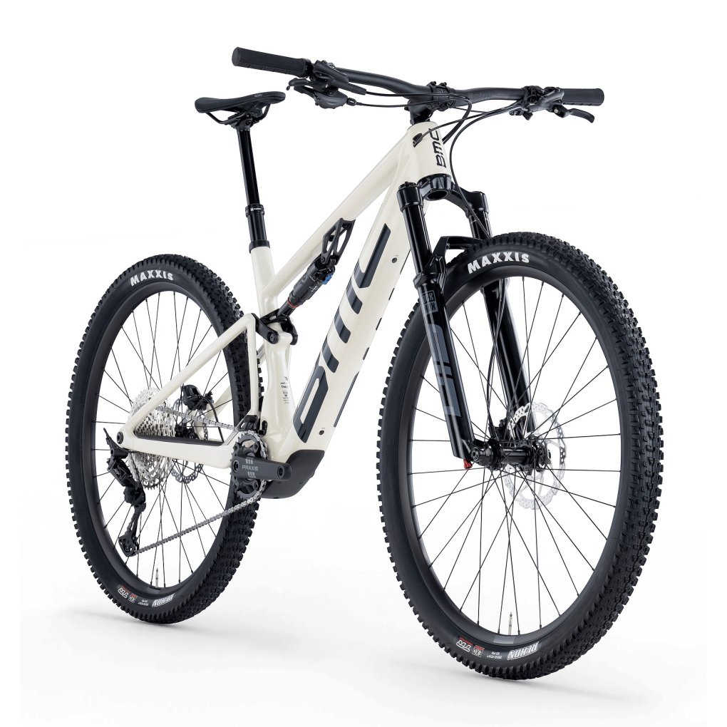 BMC Bikes ▶ Carbon E-MTB with TQ drive/360Wh battery, RockShox fork/shock & 1×12 Shimano XT. ▶ Model: pearl white