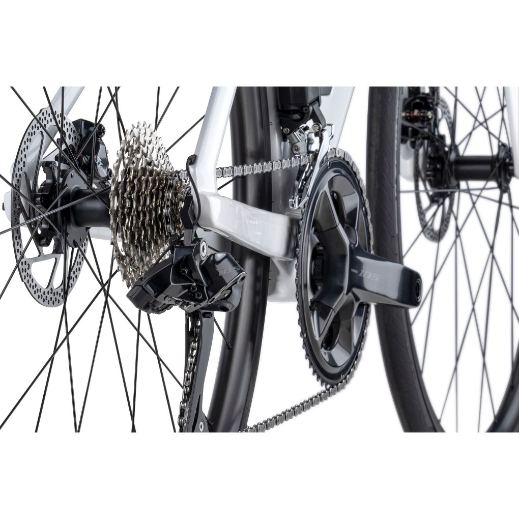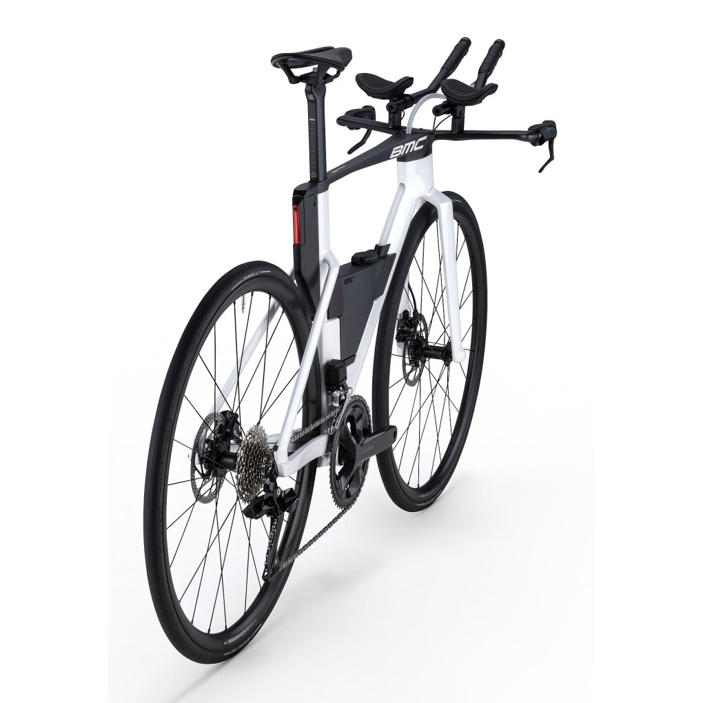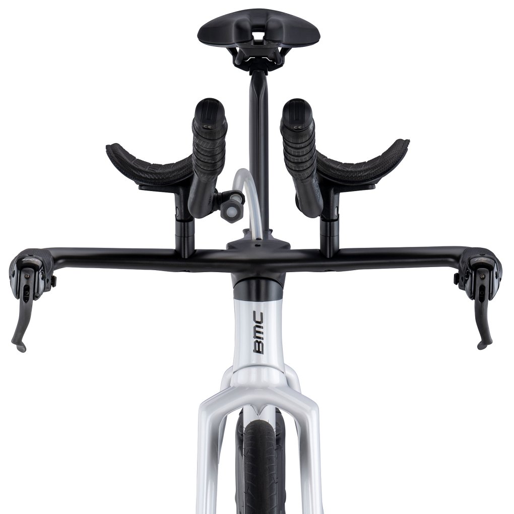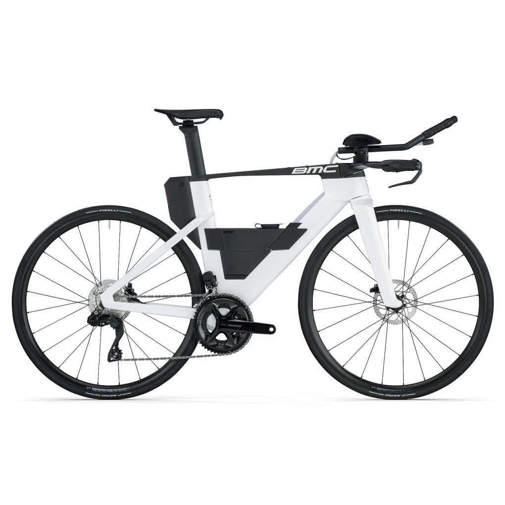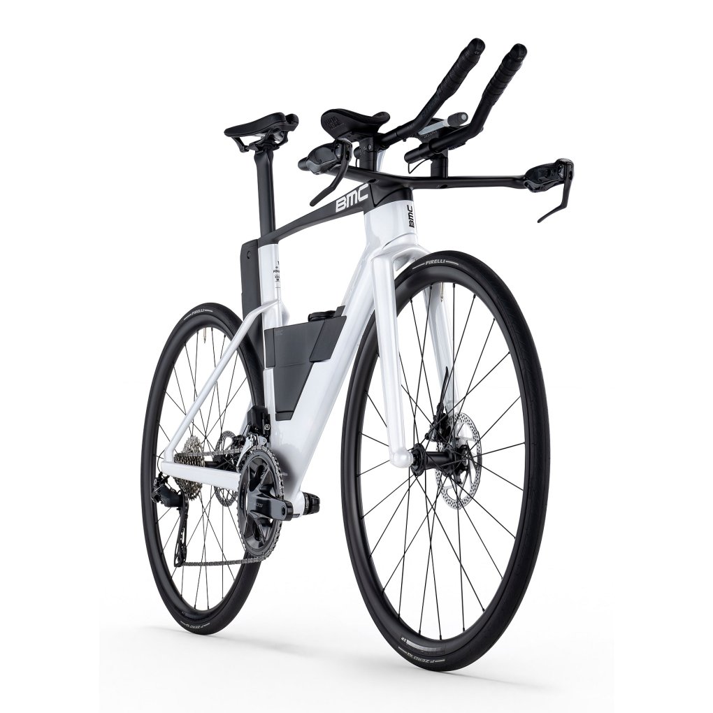 BMC Bikes ▶ Carbon triathlon bike, 2×12 Shimano 105 Di2, TRP TT disc brakes, equipment ▶ Model: cool white / black