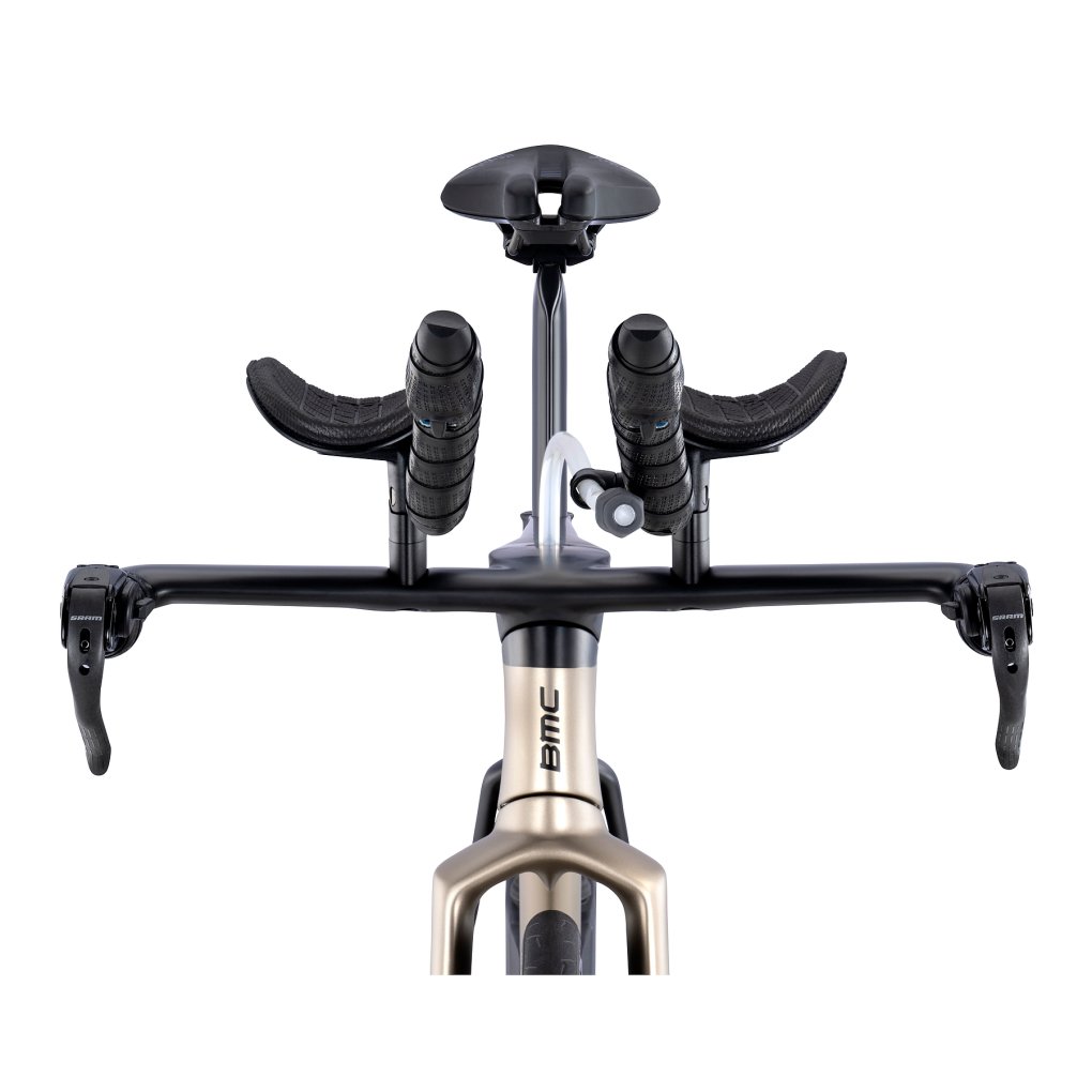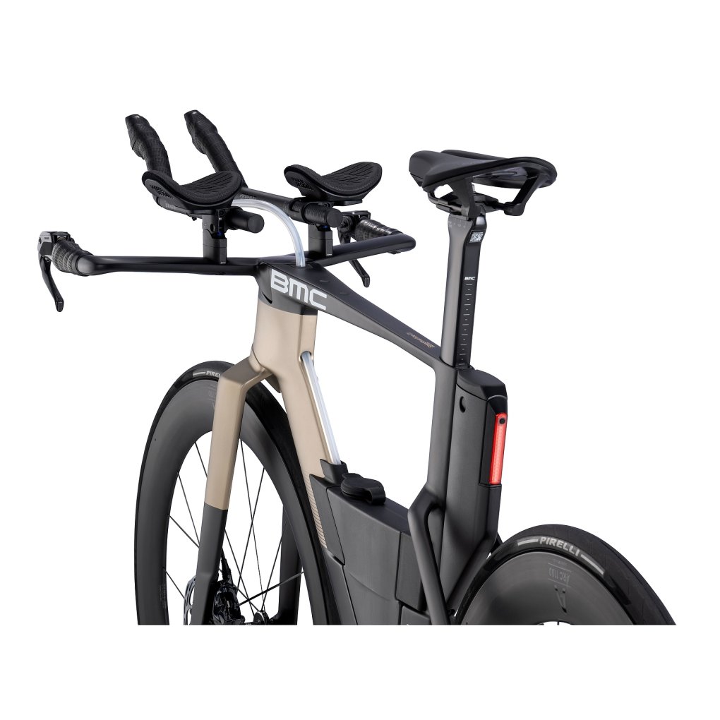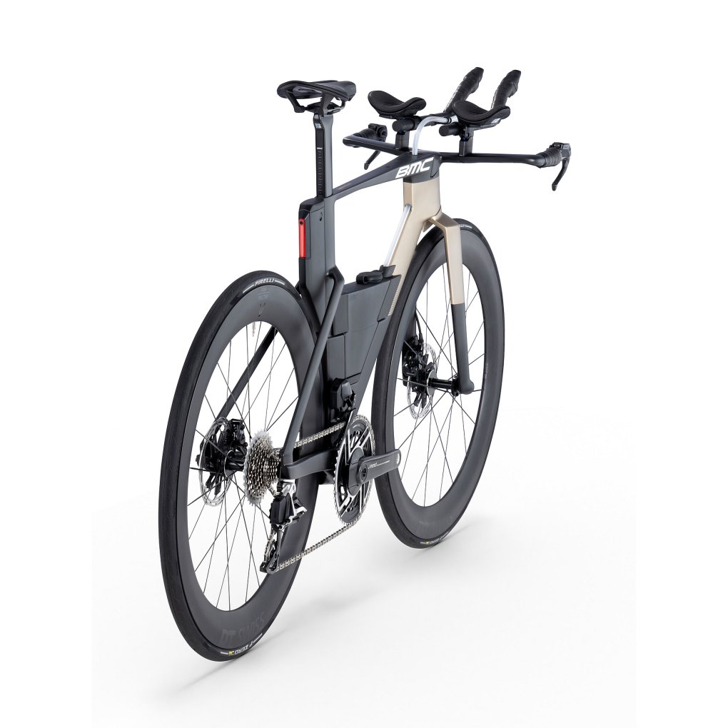 BMC Bikes ▶ Carbon triathlon bike, 2×12 SRAM Red AXS, SRAM S-900 disc brakes, equipment ▶ Model: carbon / dust gold