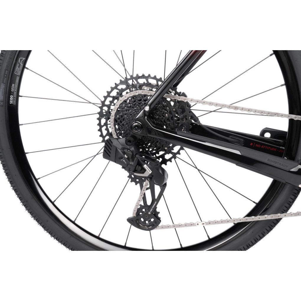 Gravel bike with carbon frame, carbon fork & SRAM APEX AXS 12-speed drivetrain.