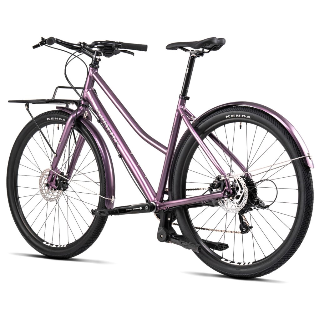 Bombtrack Bikes ▶ Urban bike with aluminum frame, Microshift drivetrain, mudguards & front carrier. ▶ Model: metallic purple