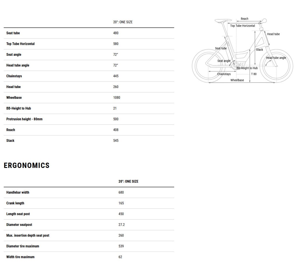 20″ e-bike with Bosch drive/545Wh battery, 1×5 Nexus, disc brakes & equipment.