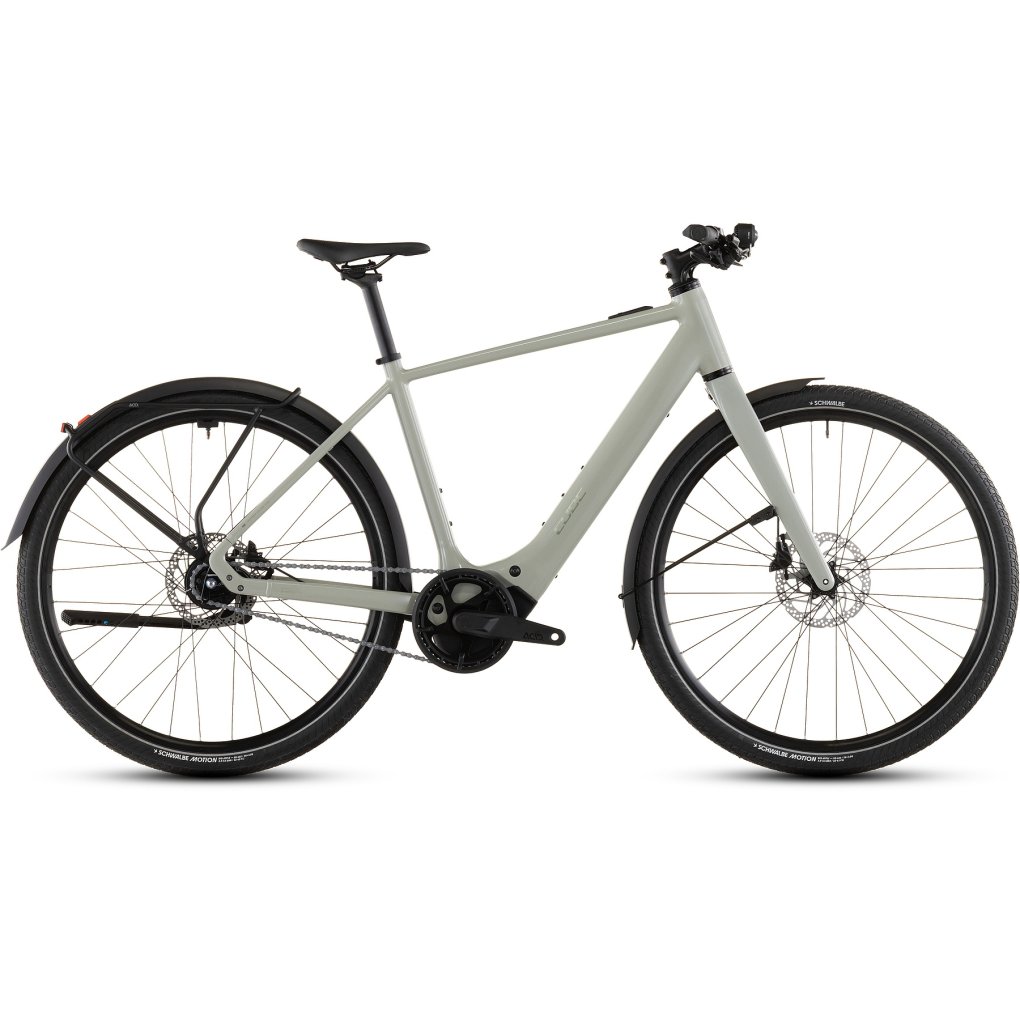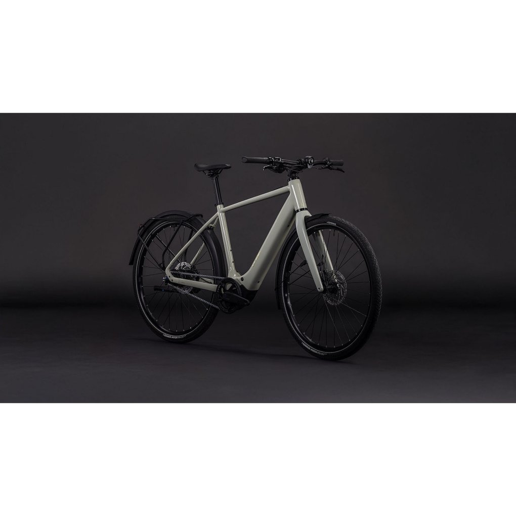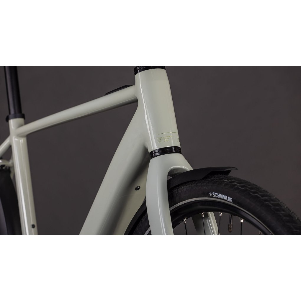 CUBE Bikes ▶ City e-bike, Bosch SX motor/400Wh battery, carbon fork, 1×8 Shimano Alfine, Shimano disc brakes ▶ Model: reedbeige / chrome