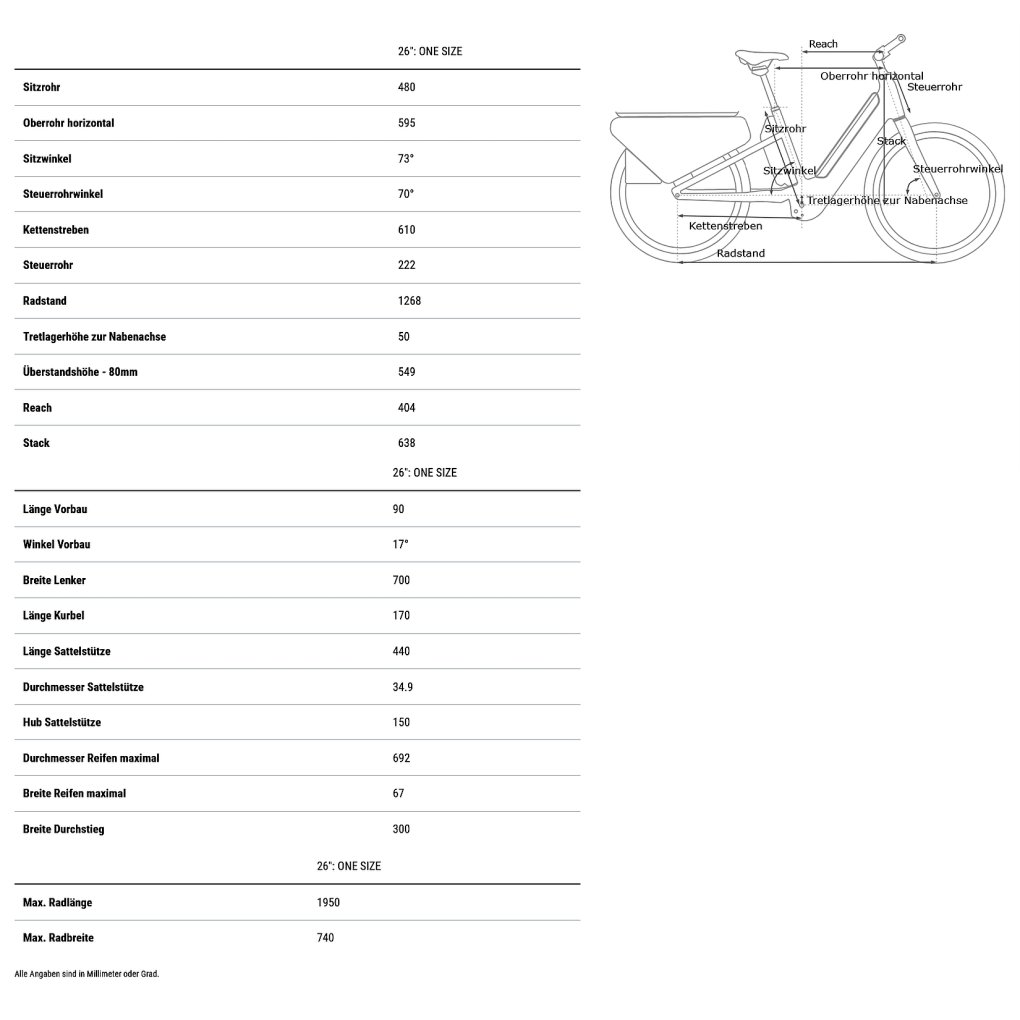 26″ cargo E-bike, Bosch motor/725Wh battery, Enviolo gear hub, Magura MT5 disc brakes, equipment