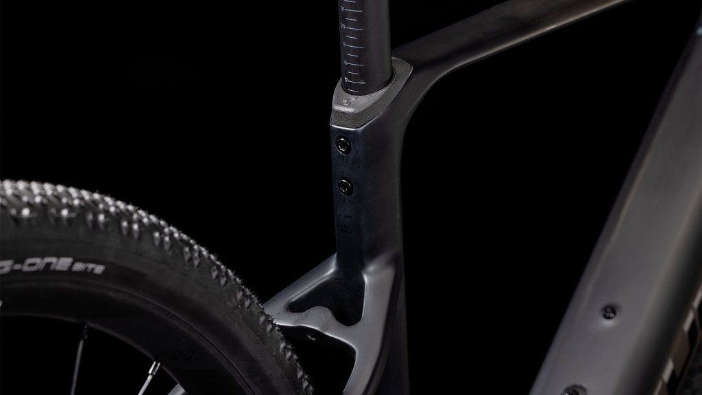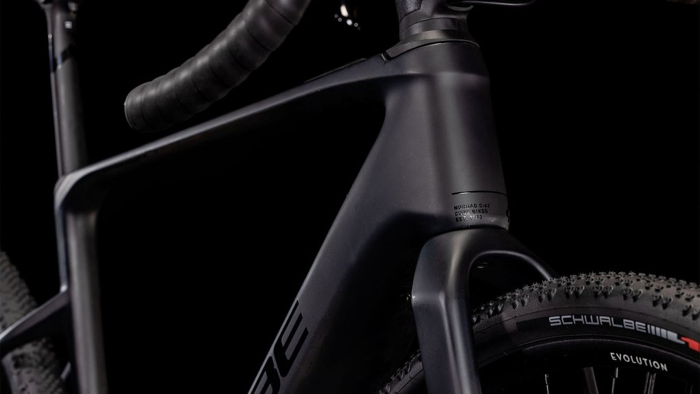 CUBE Bikes ▶ Carbon E-Gravelbike, Bosch SX motor/400Wh battery, 1×12 SRAM GX AXS, SRAM Rival disc brakes ▶ Model: carbon / glossy