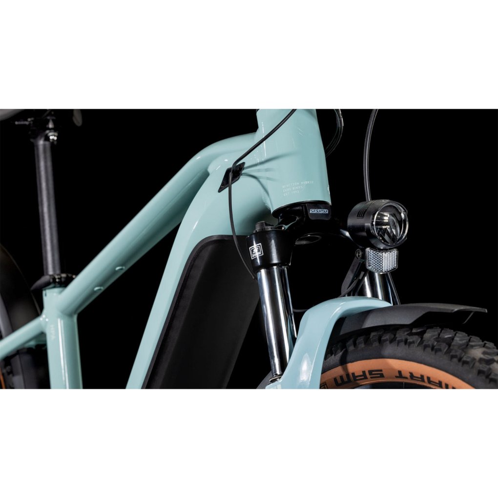 CUBE Bikes ▶ E-MTB with Bosch drive/625Wh battery, Suntour fork, 1×9 Shimano Cues, disc brakes & equipment. ▶ Model: 29″ – skylightblue / white