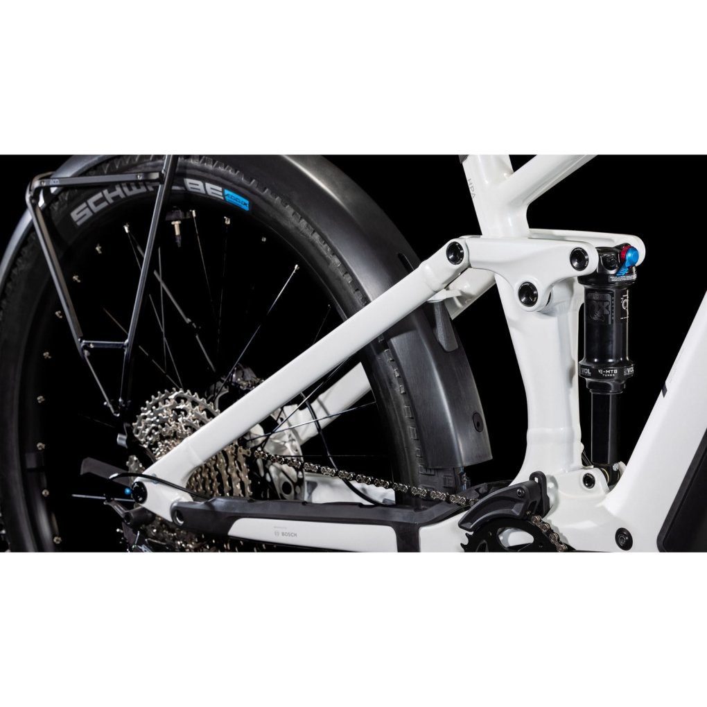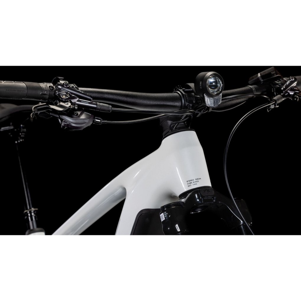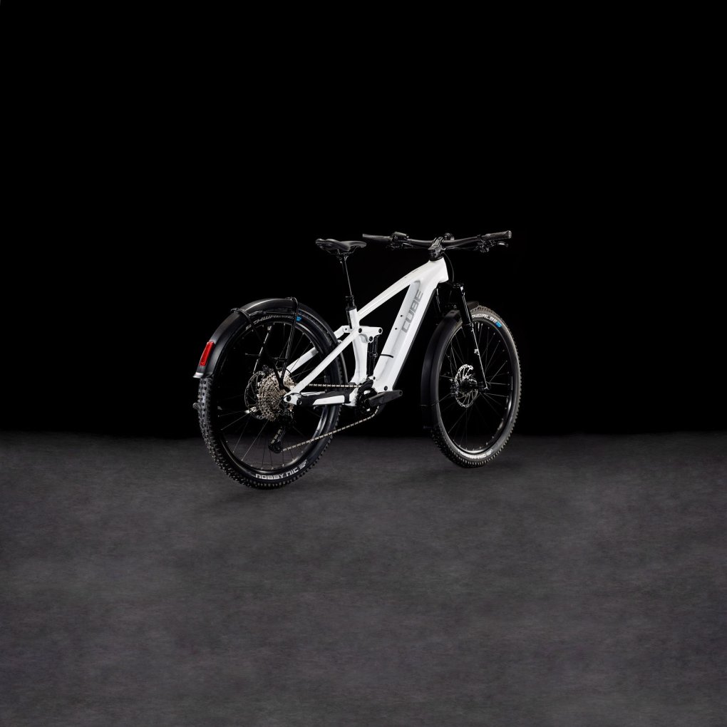 CUBE Bikes ▶ E-MTB with Bosch CX drive, 800Wh battery, Fox fork/rear shock, 1×12-speed Shimano XT & equipment. ▶ Model: 27.5″ – metallicwhite / black