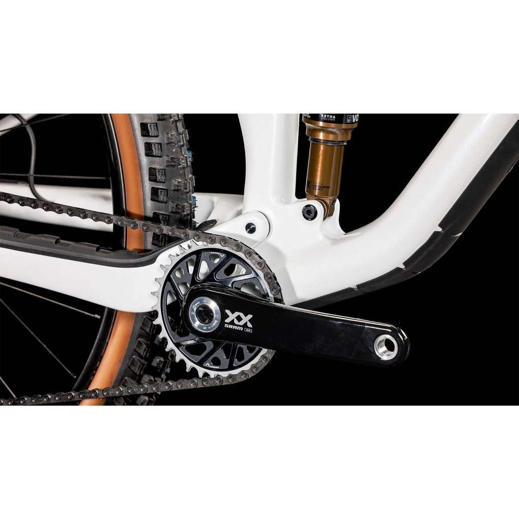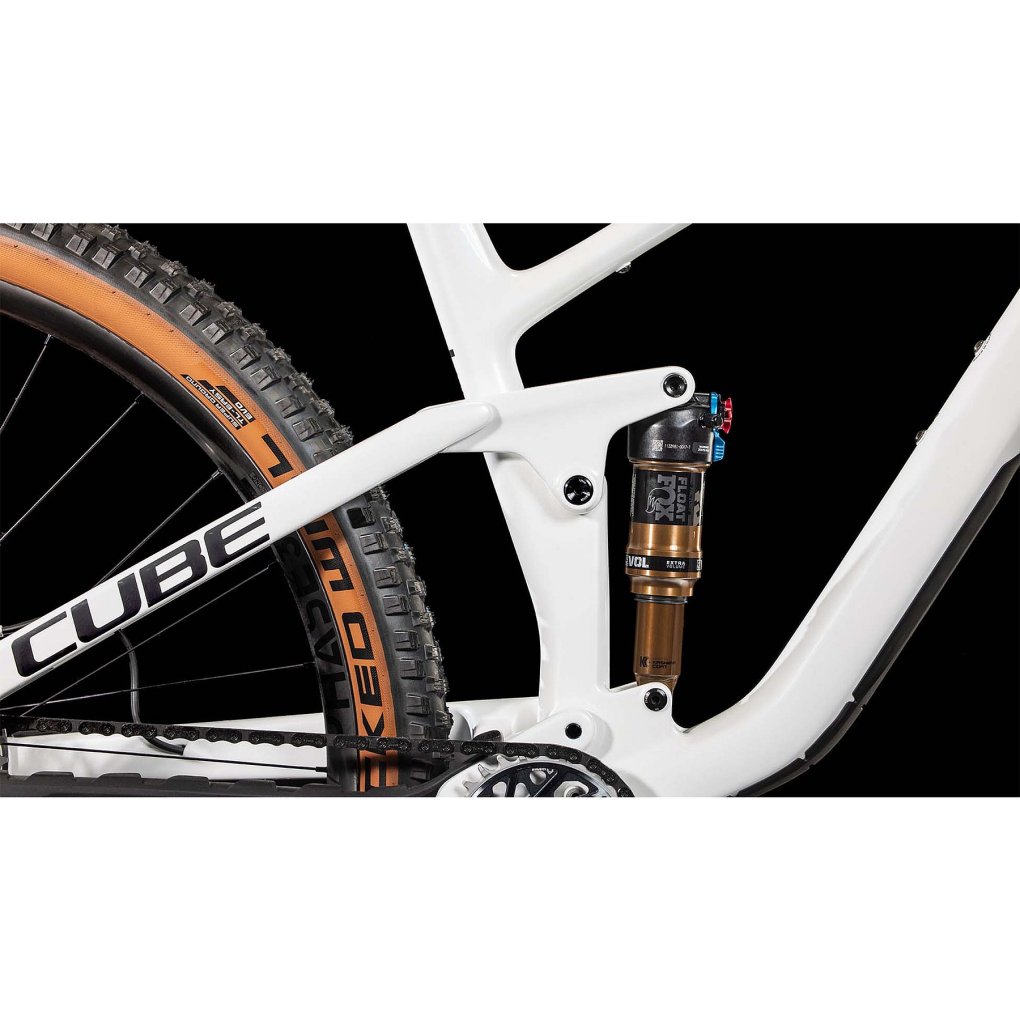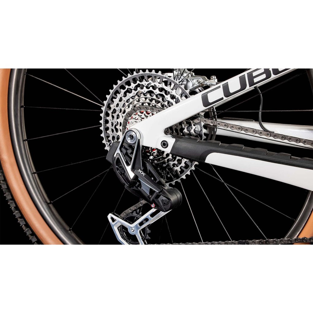 CUBE Bikes ▶ 29″ carbon MTB with Fox Factory fork & rear shock, 1×12-speed SRAM XX AXS & SRAM disc brakes. ▶ Model: metallicwhite / black