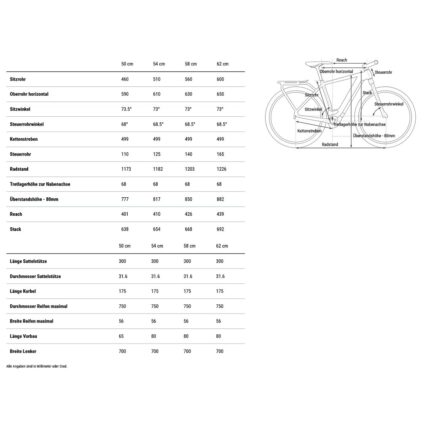 Equipped women E-bike with Bosch drive, 625Wh battery, Suntour fork and 1×11-speed Shimano Cues.