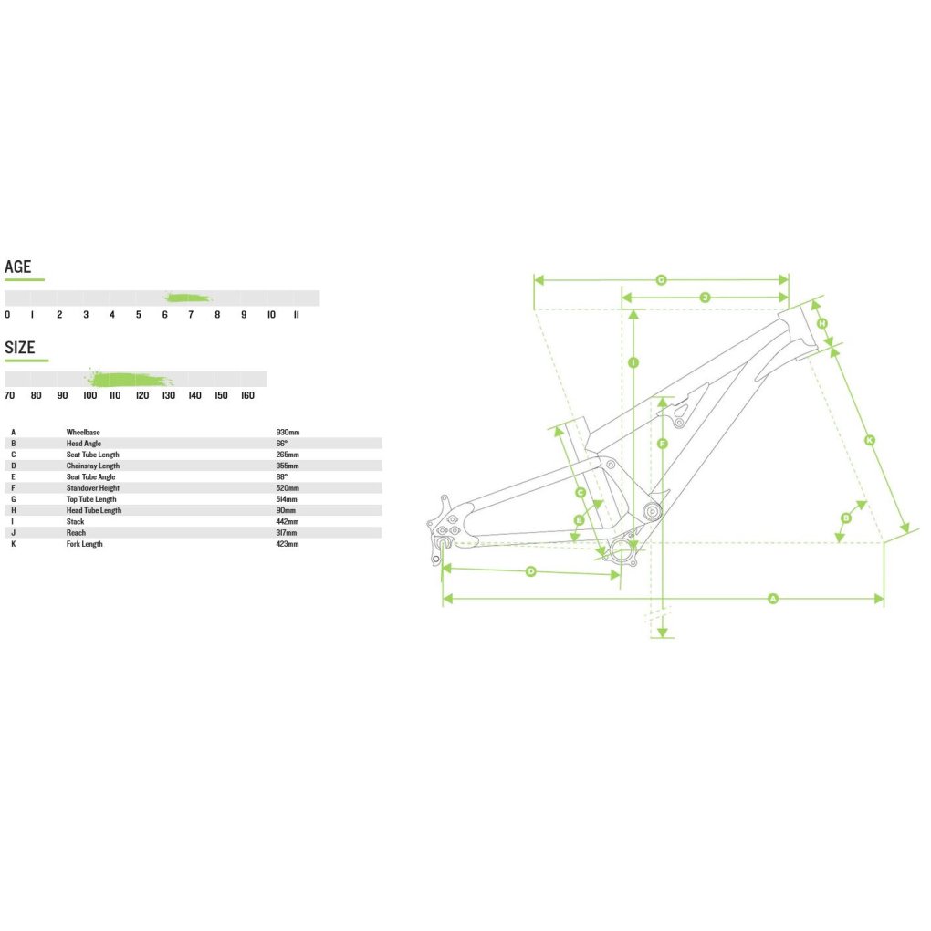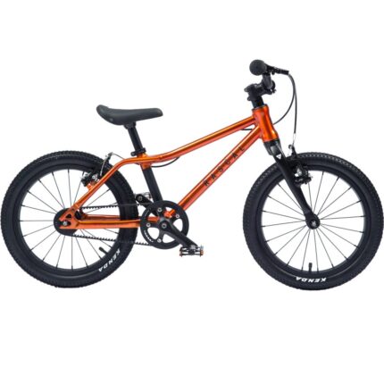 Full suspension children’s bike with RST Spex fork, DNM shock and 10-speed gears.