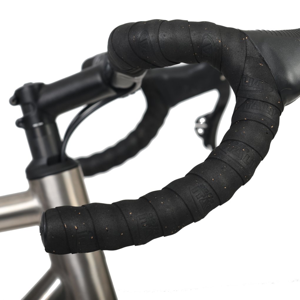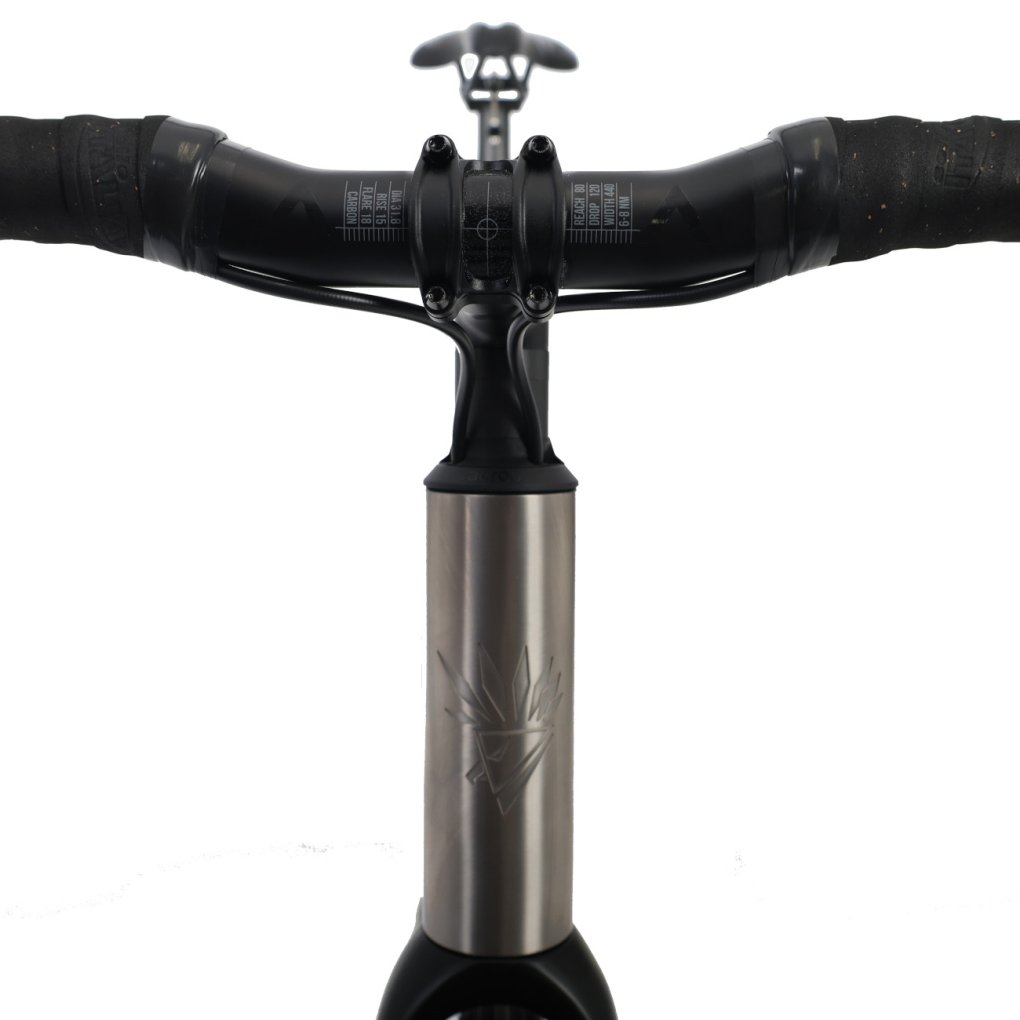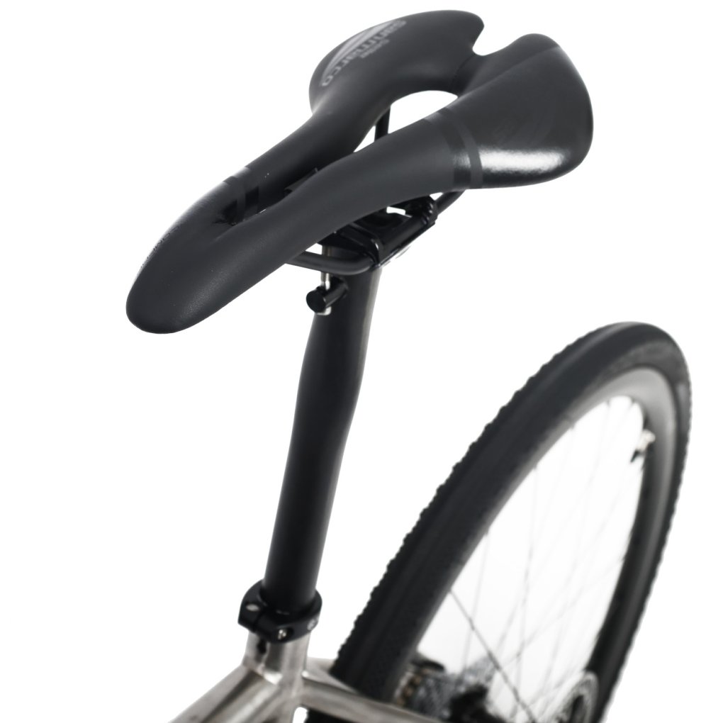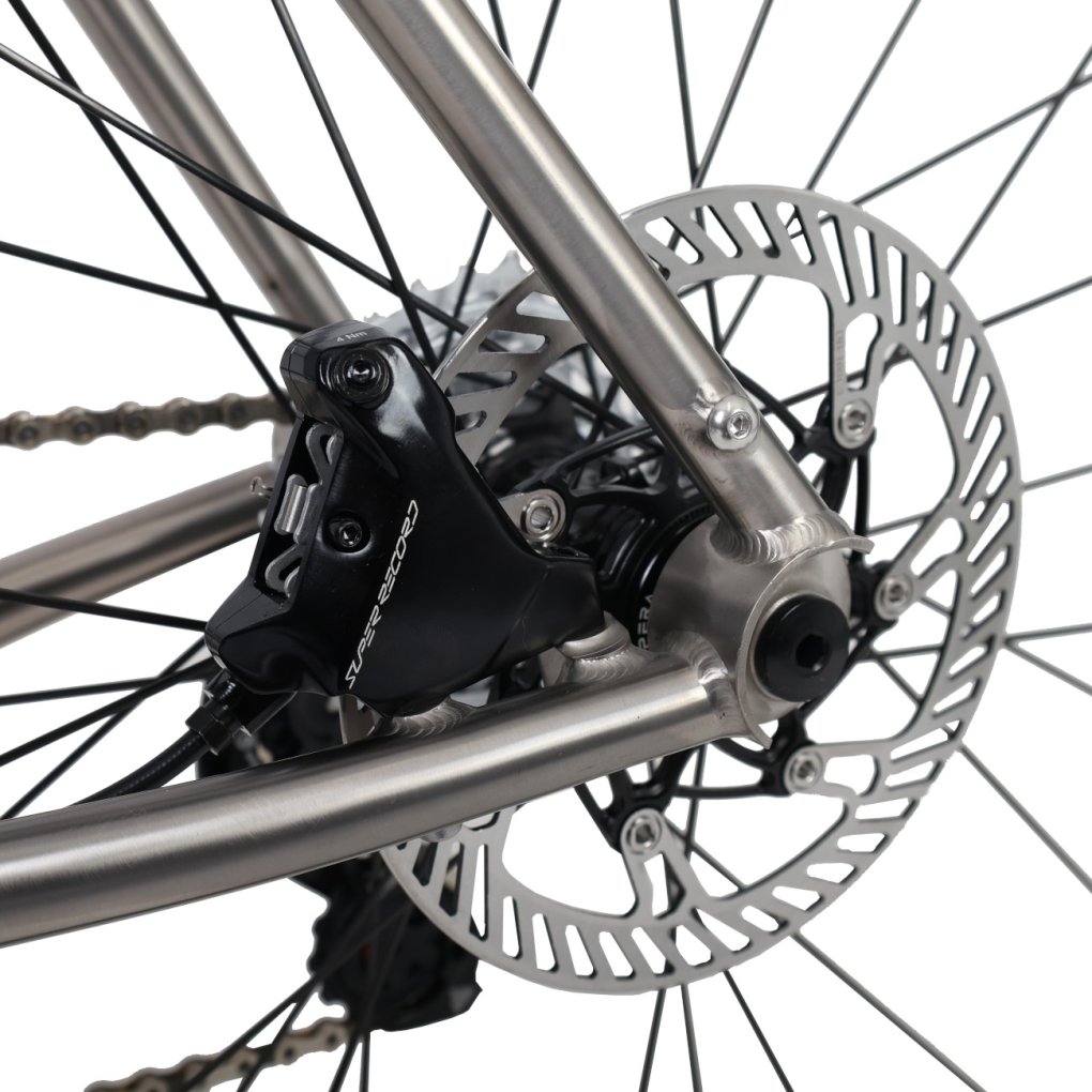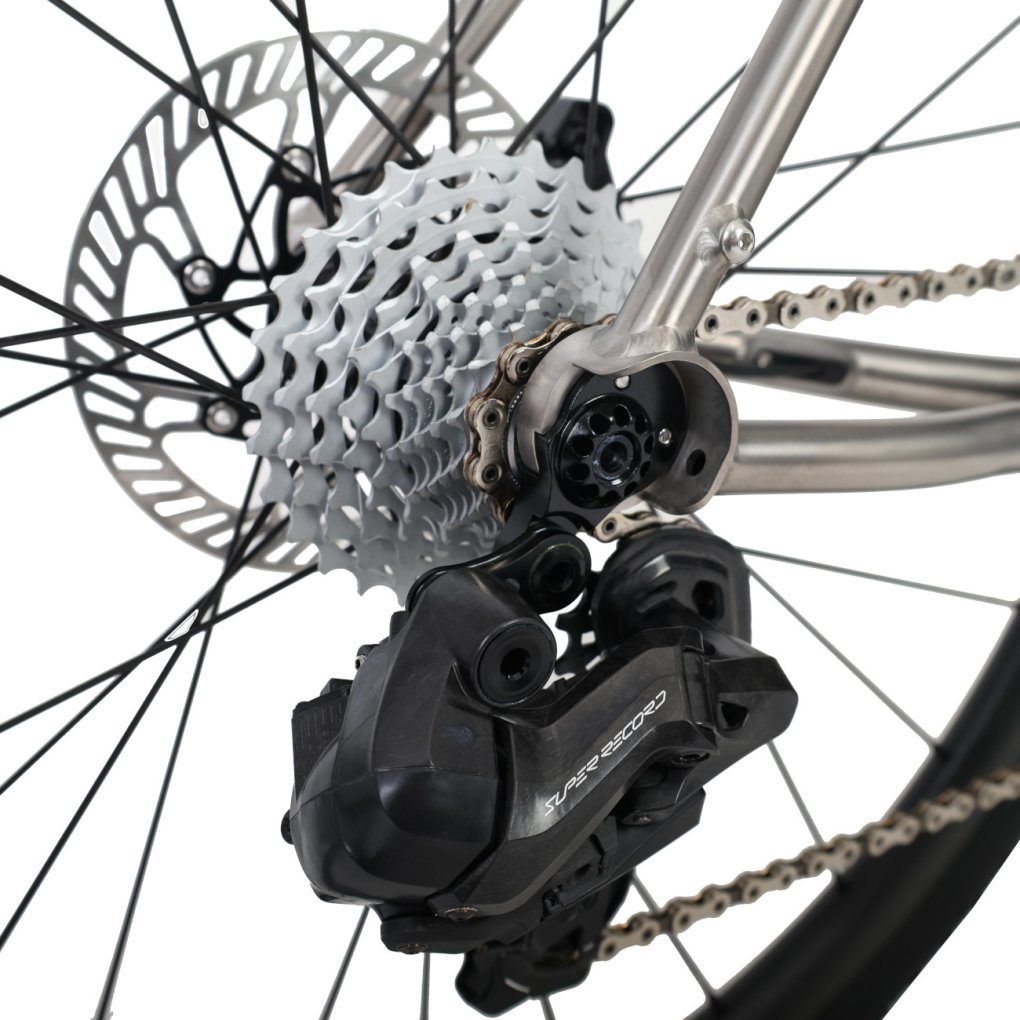 Gravel bike with titanium frame, carbon fork & Campagnolo Super Record Wireless drivetrain.