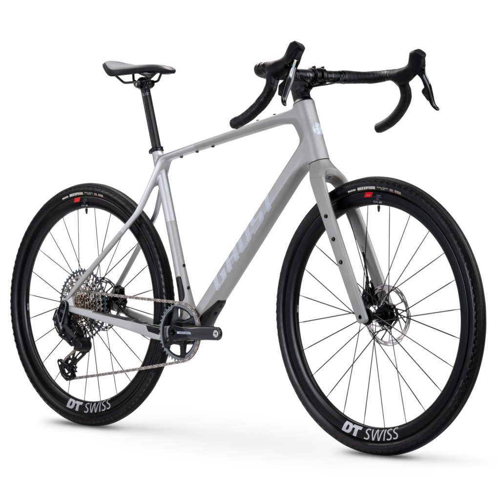 Ghost Bikes ▶ 28″ carbon gravel bike ASKET with electronic 1×12-speed SRAM X0 Eagle drivetrain. ▶ Model: mysterious grey / silver – glossy