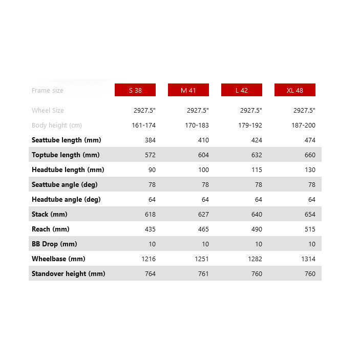 27 ,29" (622mm) ,5" / 650B (584mm) |