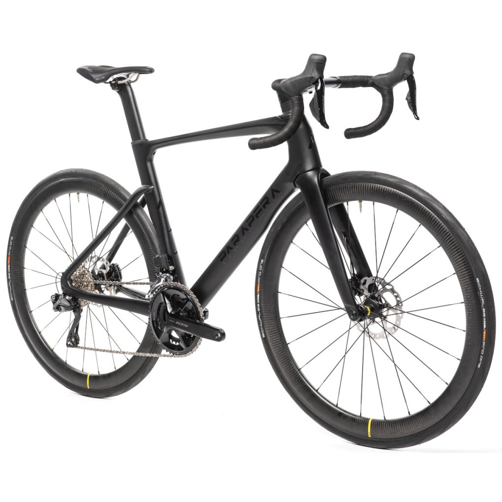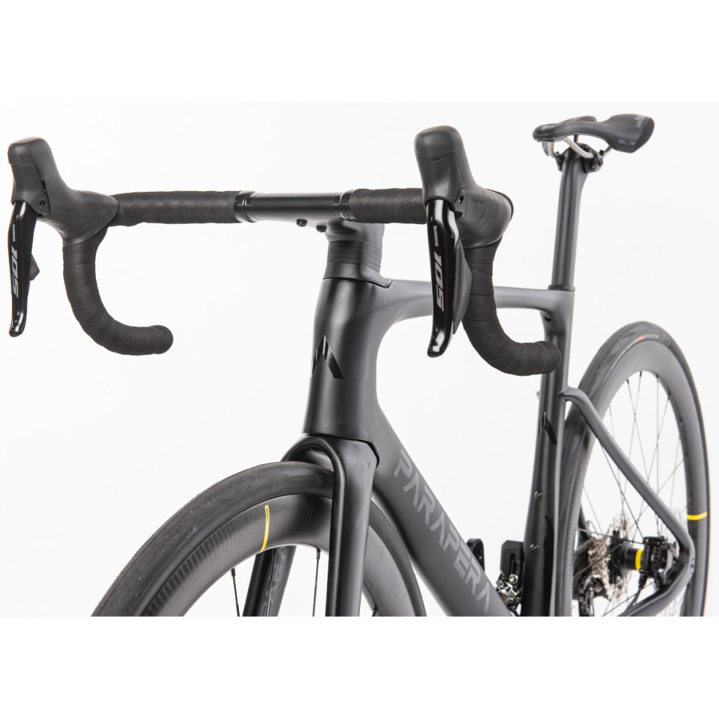 Parapera Bikes ▶ Lightweight & aerodynamic bike made of carbon. With Shimano 105 Di2 drivetrain & Mavic Cosmic SL carbon wheelset. ▶ Model: black