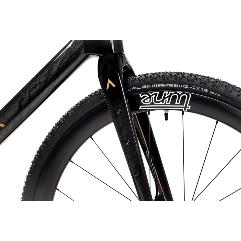 Aerodynamics & versatile carbon gravel bike with Shimano GRX Di2 drivetrain & Tune wheelset.