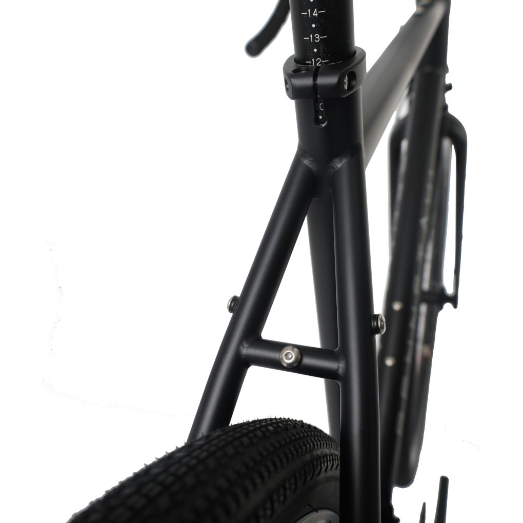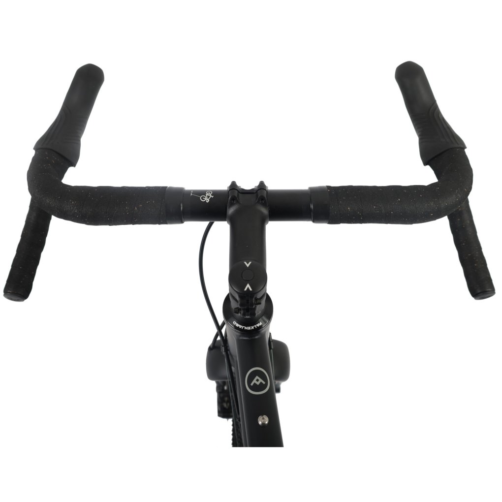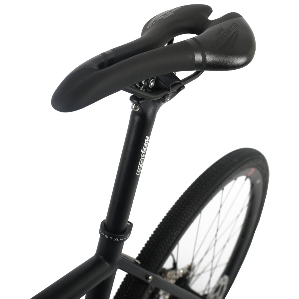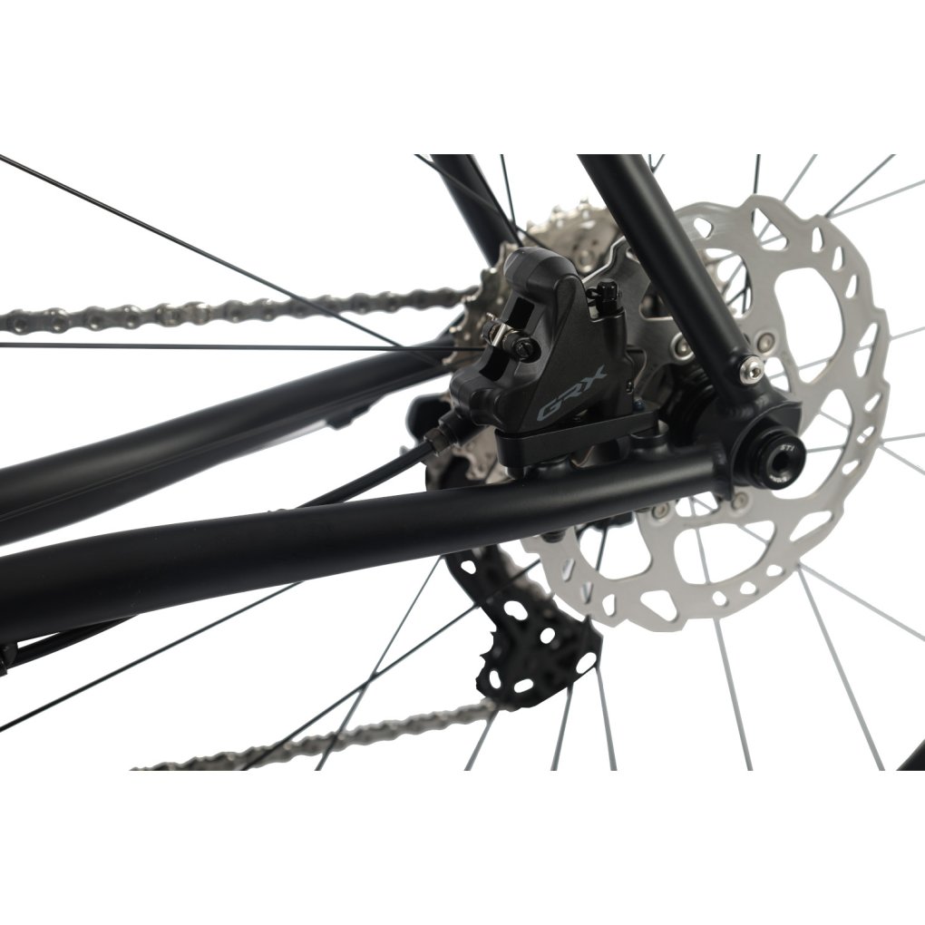 Gravel bike with steel frame, carbon fork, Furlcrum Red 300 wheelset & Shimano GRX drivetrain.