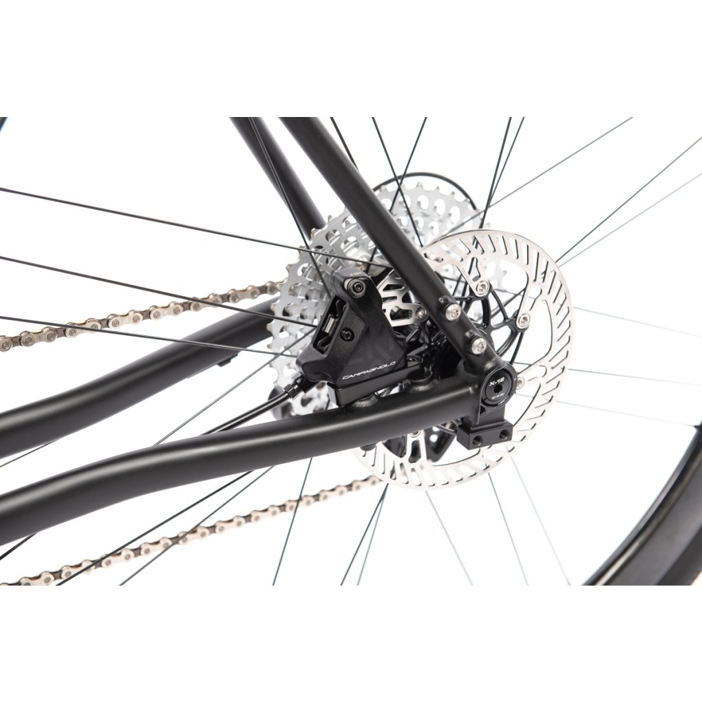 Gravel bike with carbon fork, Campagnolo EKAR gears & Levante wheelset.