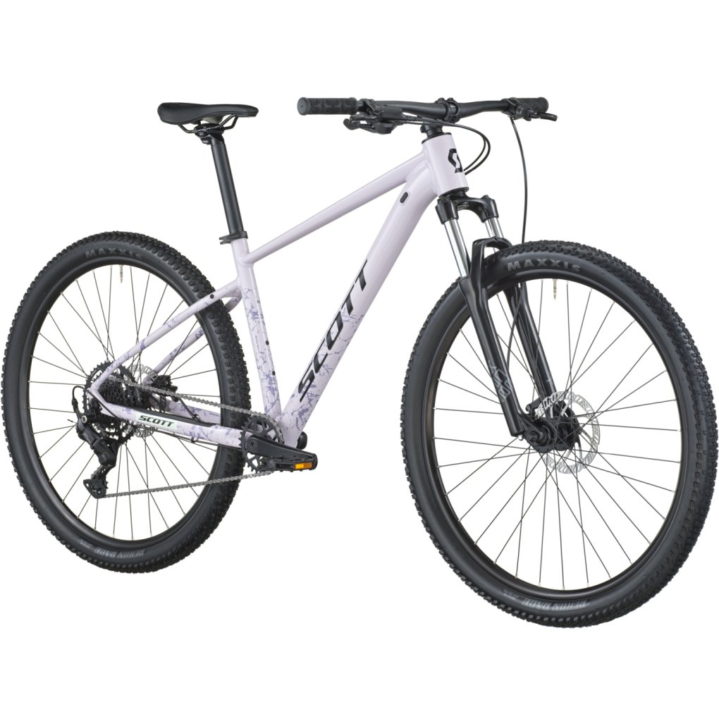 SCOTT Bikes ▶ Affordable aluminum mountain bike with Suntour XCE28 fork & Shimano CUES drivetrain. ▶ Model: violet pink