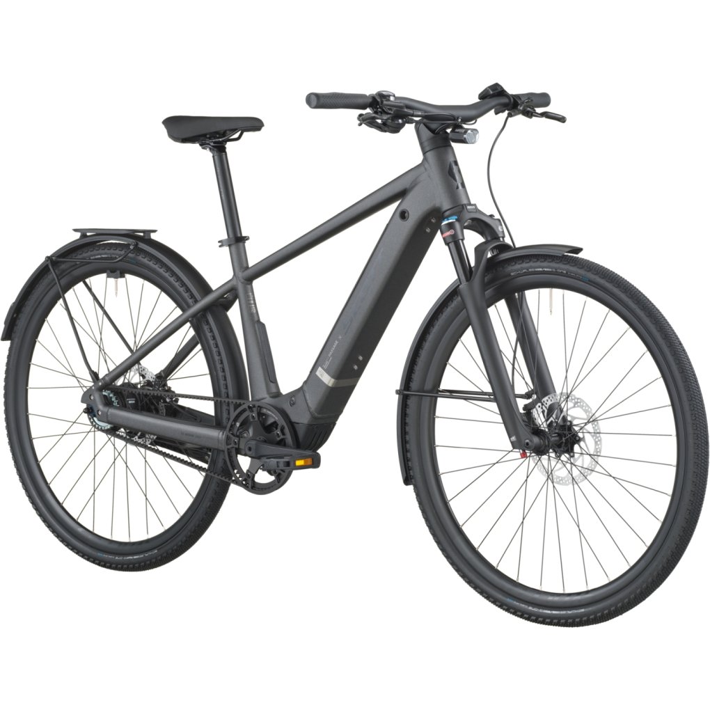 SCOTT Bikes ▶ E-bike with belt drive, SR Suntour NRX32-E fork & Shimano Nexus hub gears. ▶ Model: midnight grey