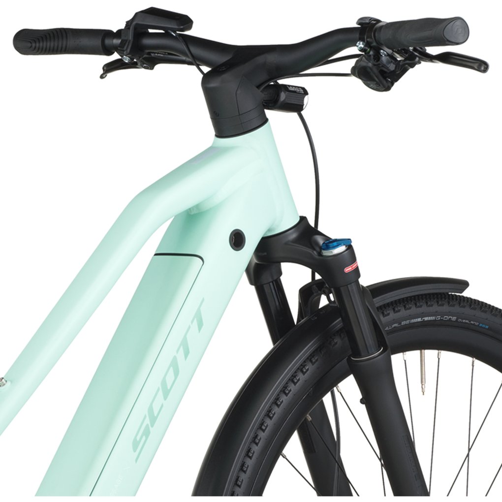 SCOTT Bikes ▶ E-bike with belt drive, SR Suntour NRX32-E fork & Shimano Nexus hub gears. ▶ Model: mint green