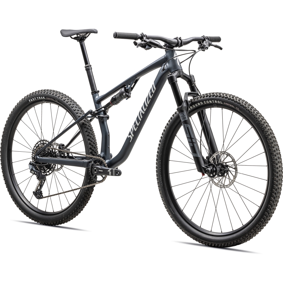 Specialized Bikes ▶ Mountain bike with aluminum frame, RockShox SID fork, RockShox Deluxe Select+ shock & SRAM GX Eagle drivetrain. ▶ Model: satin metallic deep lake / gloss white