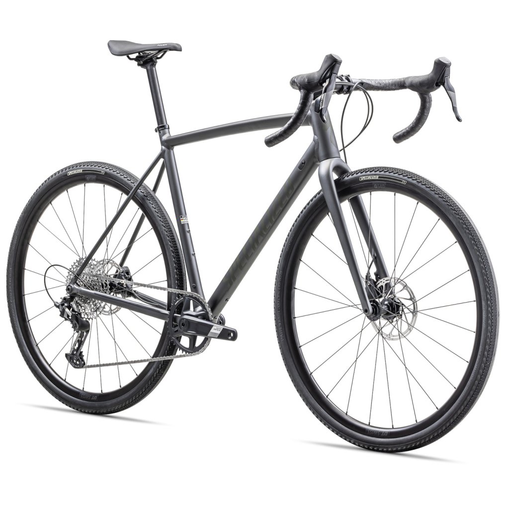 Gravel bike with aluminum frame, carbon fork & SRAM APEX XPLR 12-speed drivetrain.