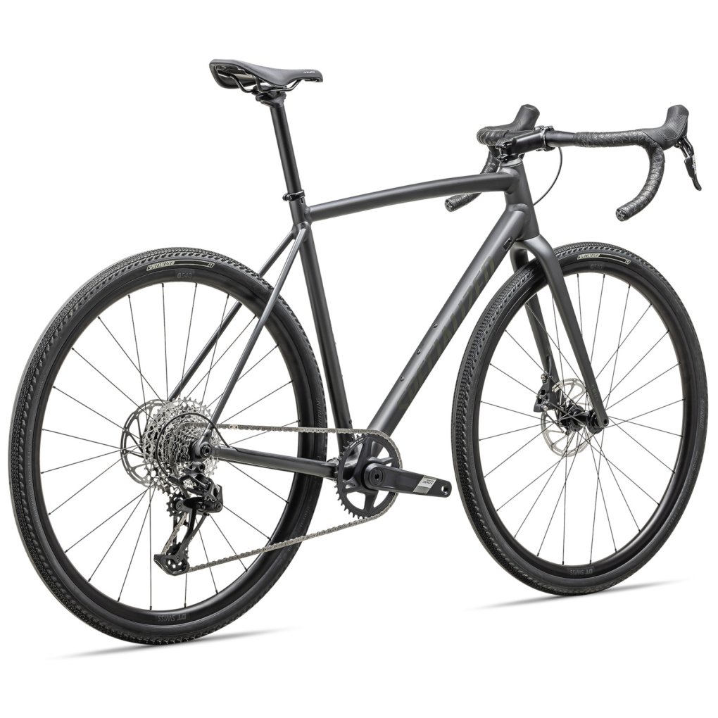 Specialized Bikes ▶ Gravel bike with aluminum frame, carbon fork & SRAM APEX XPLR 12-speed drivetrain. ▶ Model: satin smoke / oak green