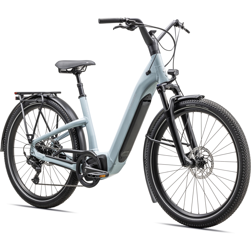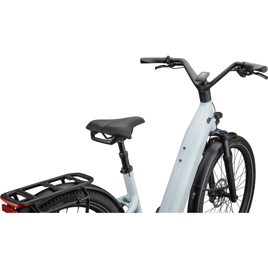 Specialized Bikes ▶ City e-bike with Specialized 2.0 motor, Shimano CUES drivetrain, mudguards, lights & pannier rack. ▶ Model: gloss seafoam / silver dust reflective