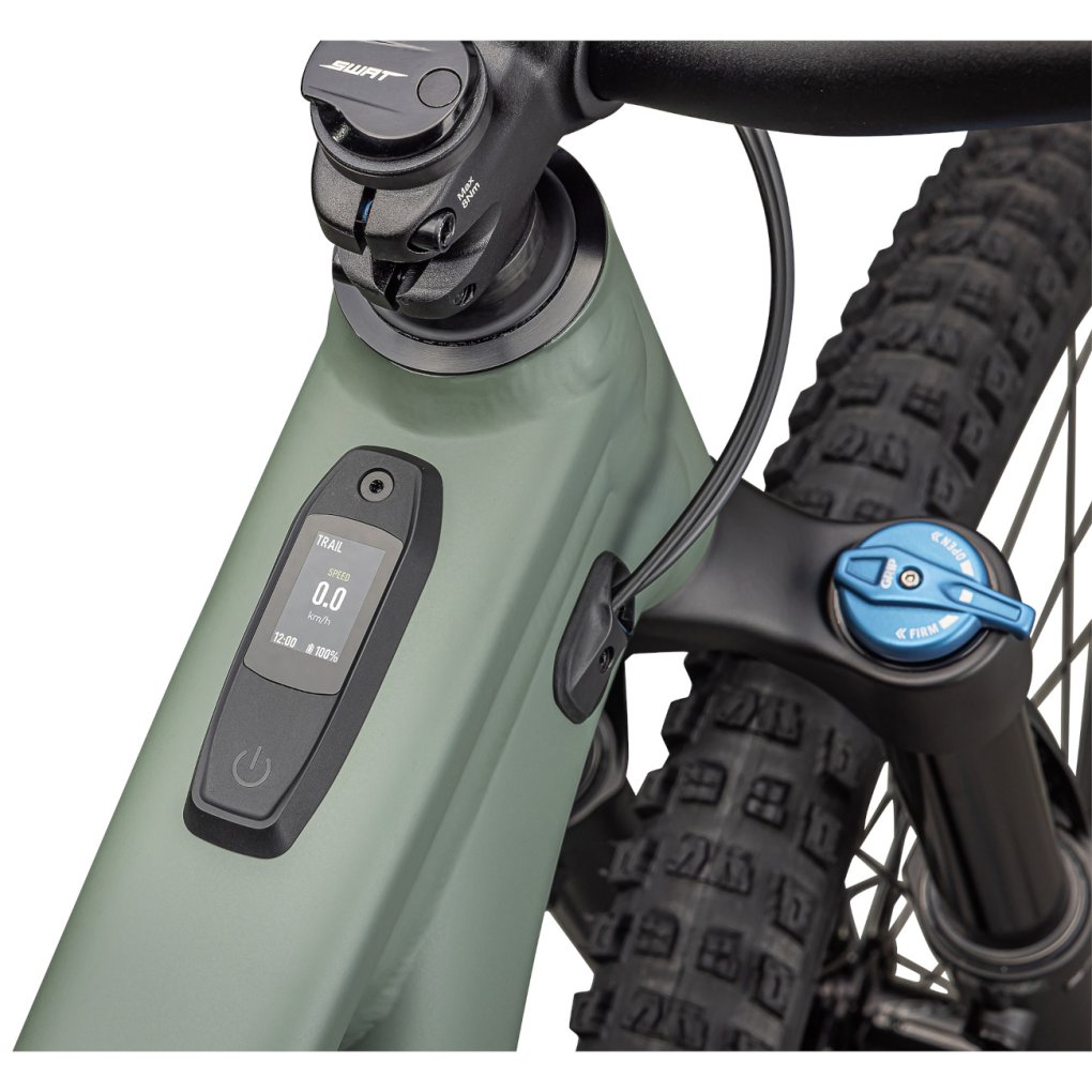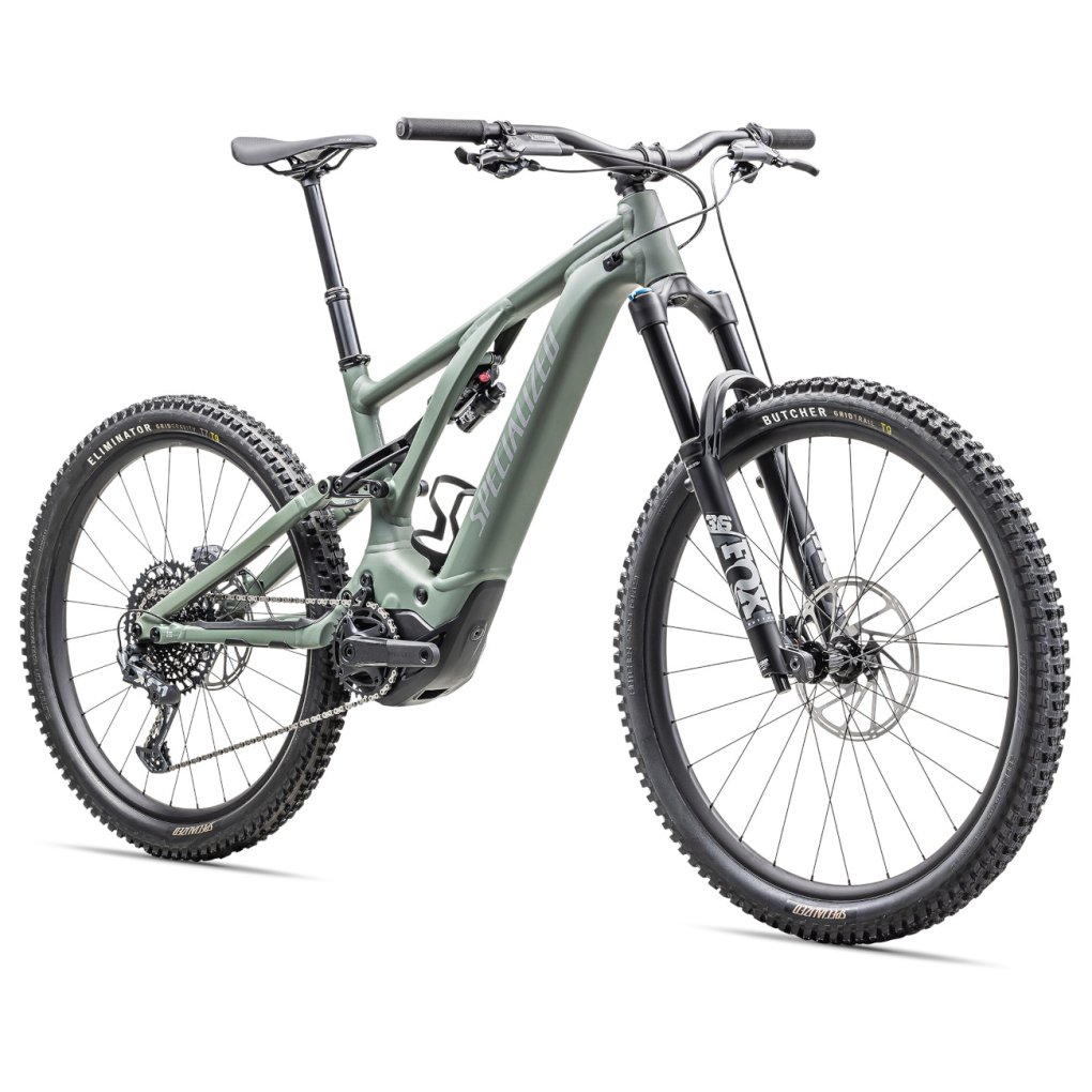 Specialized Bikes ▶ E-mountain bike with aluminium frame, FOX suspension, Specialized 2.2 Motor & SRAM X01 Eagle drivetrain. ▶ Model: sage green / cool grey / black