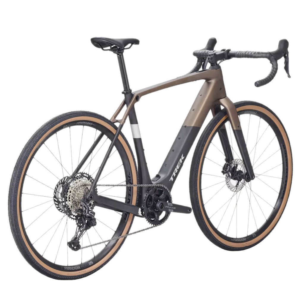 Trek Bikes ▶ Comfortable carbon gravel bike with modern TQ motor and Shimano GRX 12-speed gears. ▶ Model: Matte Bronze Age / Dark Web